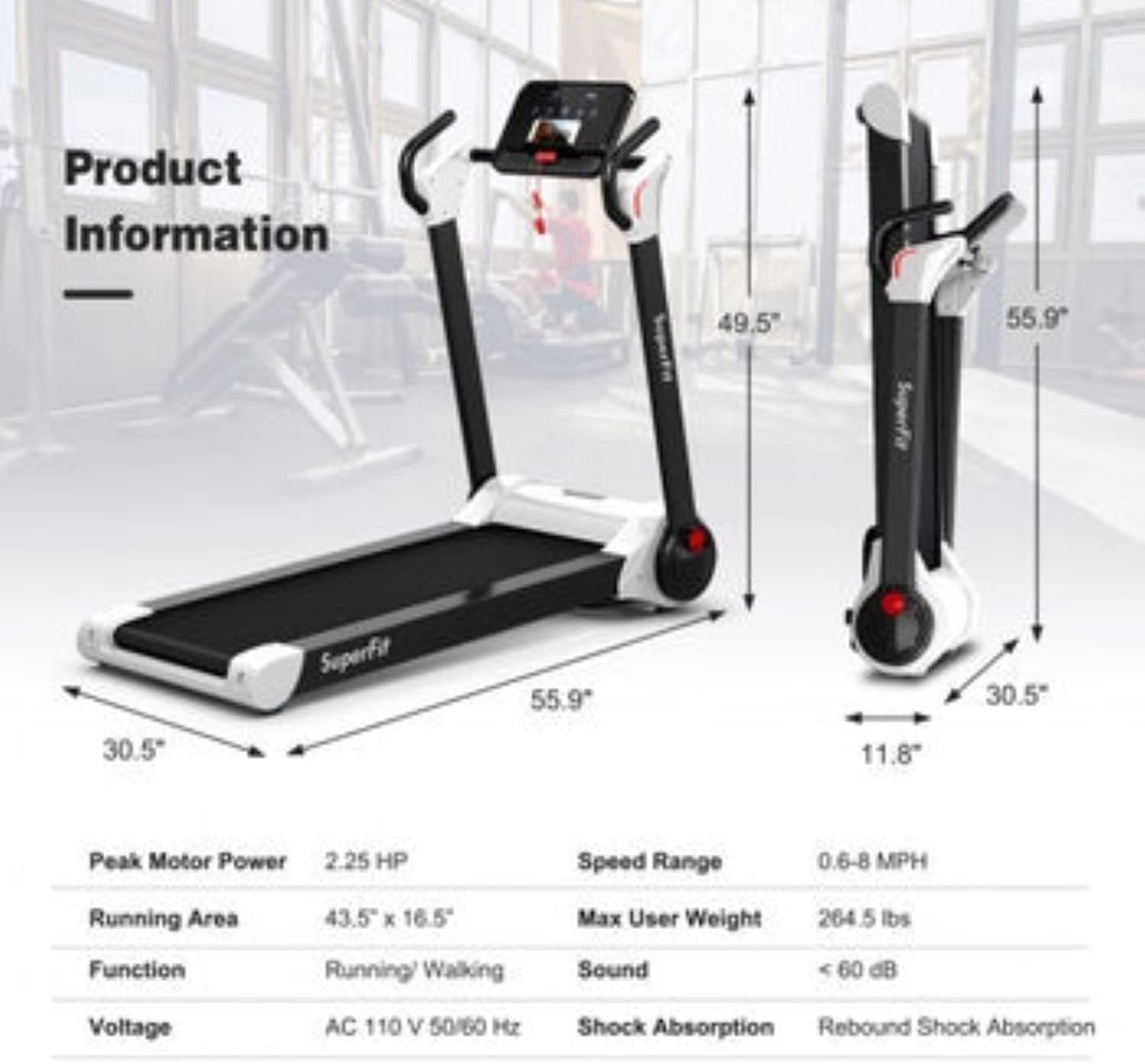 2.25 HP Electric Motorized Folding Running Treadmill Machine with LED Display-Black - Grimbo Sports