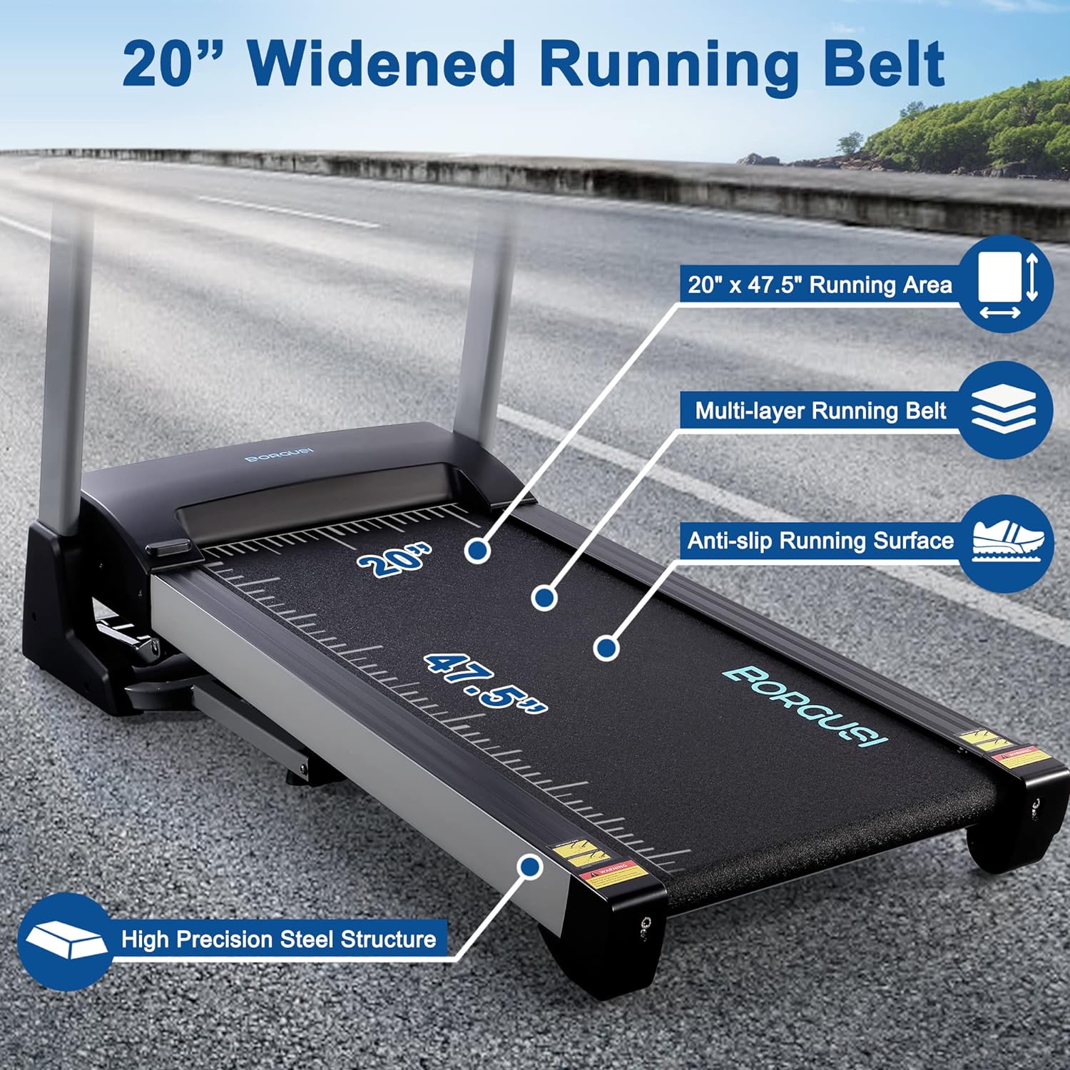 BORGUSI 15% Auto Incline Treadmill with Bluetooth Speaker, 20" Wide 3.5HP Folding Electric Treadmill with LCD Display Easy Assembly Running Walking Exercise Machine for Home Use, 350 LBS Capacity