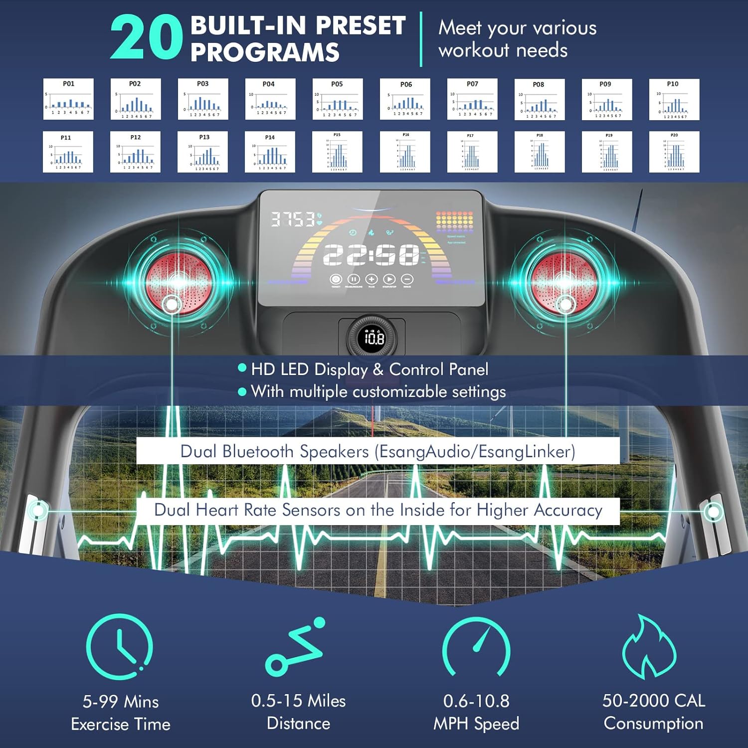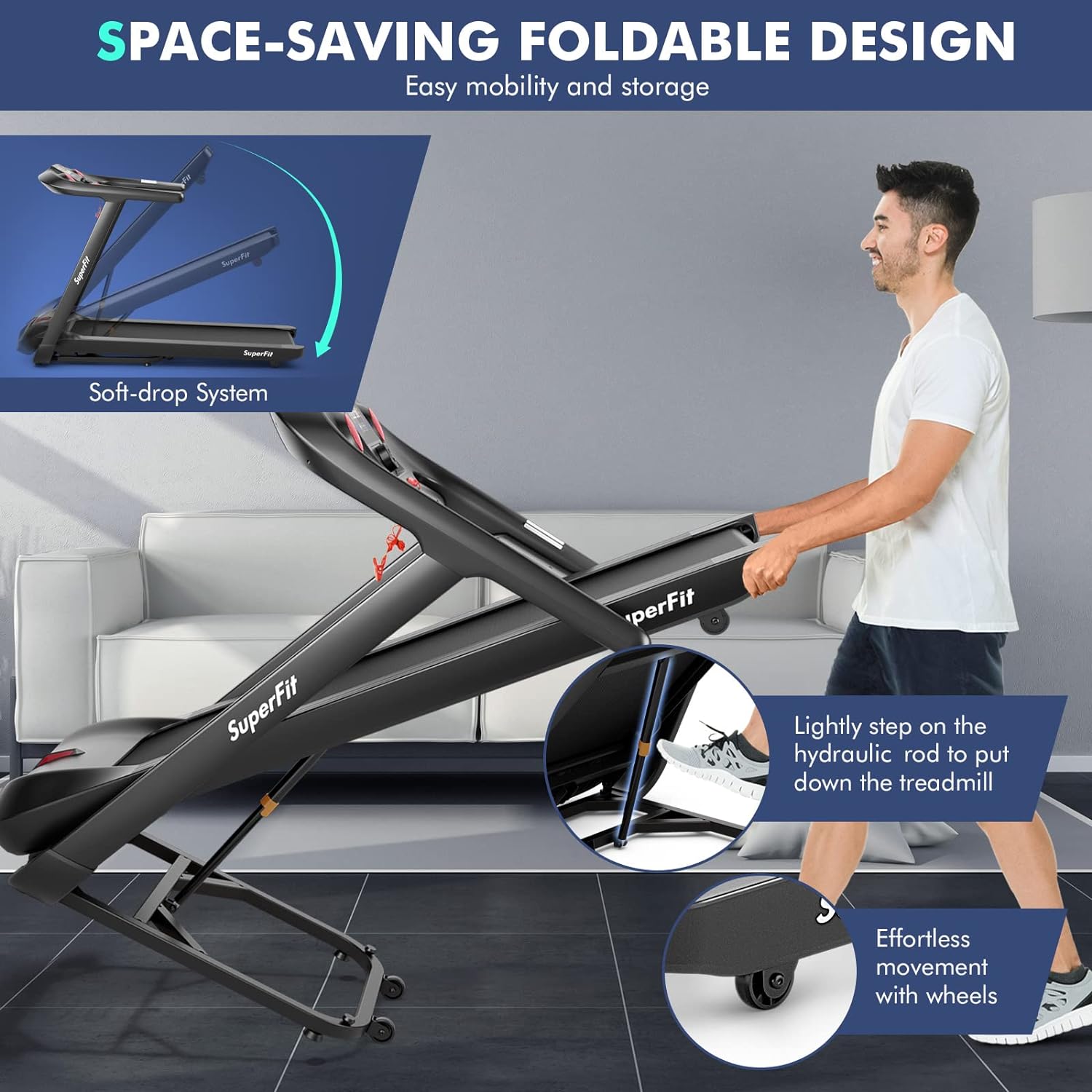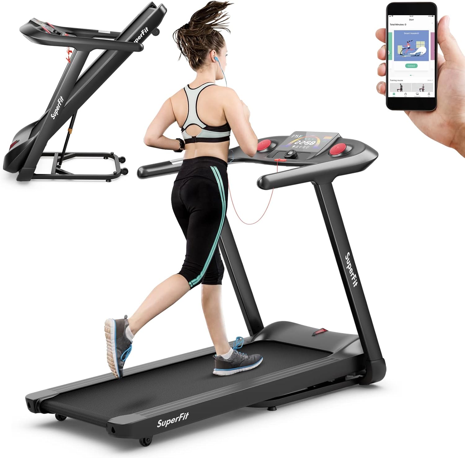 Goplus 4.75HP Folding Treadmill with 15% Auto Incline, Electric Superfit Treadmill w/Voice and APP Control, 20 Preset Programs, LED Touch Screen, Walking Jogging Running Machine for Home Office