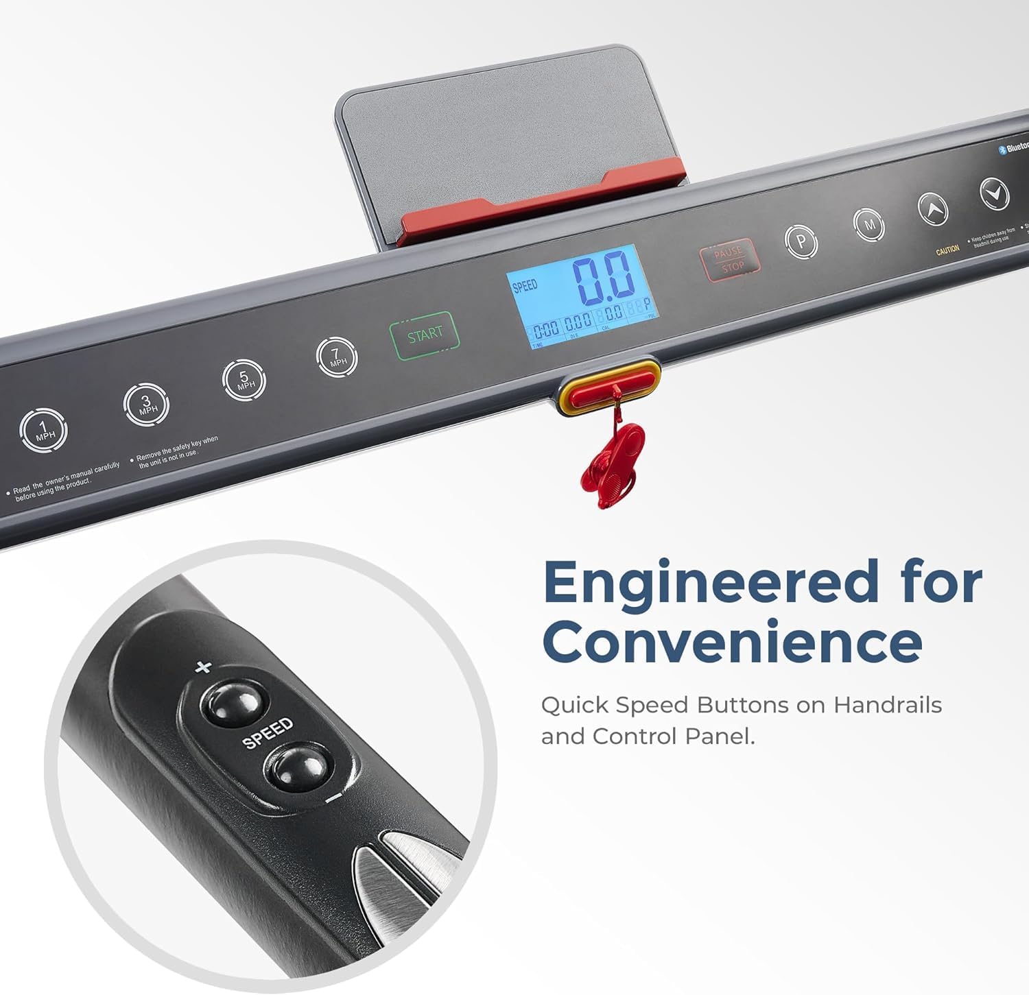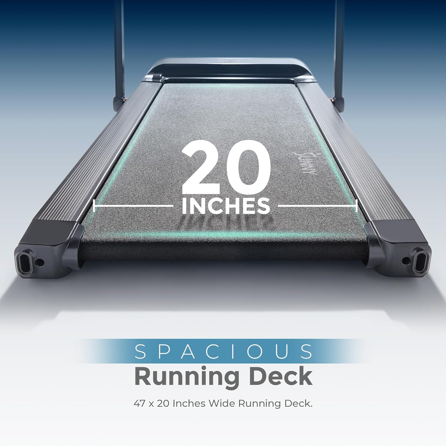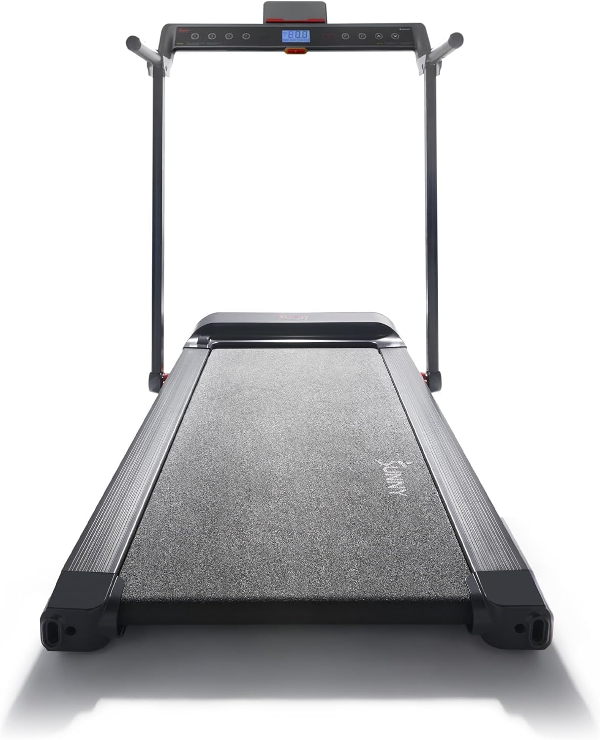 Sunny Health & Fitness Strider Foldable Treadmill, 20-Inch Wide Running Belt, Customizable Workout Programs, Pulse Sensors with Optional Exclusive SunnyFit App and Enhanced Bluetooth Connectivity
